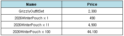 OutfitSet and Pouch from Last Month [2025/12/17 ~ 2026/01/21]