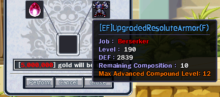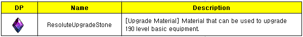 Basic weapons and outfits of level 190 can be upgraded by using a ResoluteUpgradeStone.