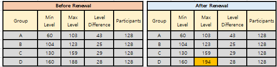 We are pleased to inform you that the maximum character level has been increased to Level 194.